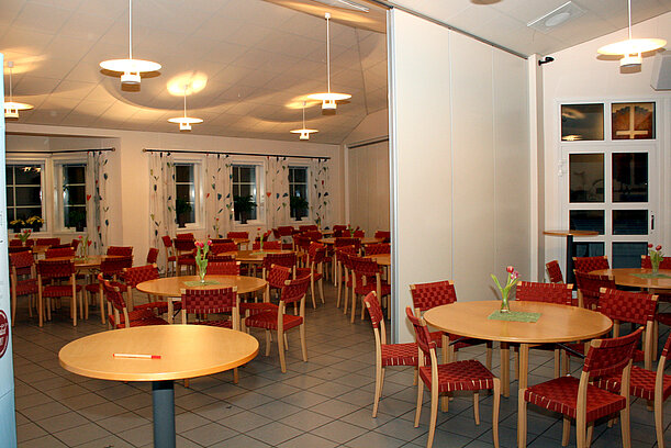 Samlingssalen, som även kalas kafédelen, har en serveringslucka in till köket.